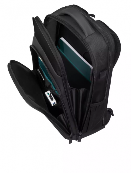 Бренд - Samsonite / Габариты - 40x28x13,5 / Вес, кг - 0,9 / Объем, л - 16,5 / Материал - полиестер / Тип материала - Мягкий корпус / Для кого - Для мужчин / Цвет - Черный / Гарантия - 2 года / Диагональ экрана ноутбука - 14.1" / Умные функции - USB-порт, Внешний карман, Место для бутылки, Ручка для переноски, Органайзер, Потайной карман, Отдел для ноутбука, Отдел для Power Bank, Легкий