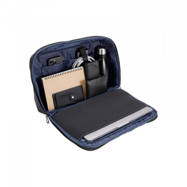 Ця модель відзначається наявністю двох внутрішніх відділень: одне ідеально підходить для ноутбука з діагоналлю до 15,6 дюймів, інше — для зберігання важливих документів формату А4. Додатково, сумка оснащена двома внутрішніми кишенями для аксесуарів і зовнішньою кишенею для швидкого доступу до дрібниць.