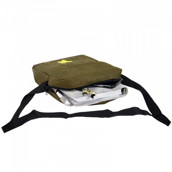 Сумка має центральний відсік із фіксуючим ременем для вашого пристрою, який гарантує надійний захист. Об'ємний простір дозволяє зберігати документи та аксесуари. Додаткові кишені на потаєнній блискавці ідеально підходять для зберігання дрібних речей.