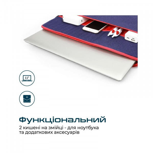 Рекомендований розмір ноутбуку - 11'', Спосіб закриття - блискавка, Матеріал - поліестер, тканина