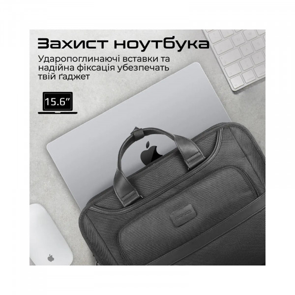 Сумка для ноутбука Promate 15.6" Paramount-MB Black — це ідеальний вибір для тих, хто цінує якість і стиль. Виготовлена з високоякісного поліестеру, ця сумка не тільки елегантна, але й надзвичайно зносостійка. Вона оптимально підійде для ноутбуків з діагоналлю до 15.6", забезпечуючи їх надійний захист завдяки щільним стінкам і вставкам, що поглинають удари.