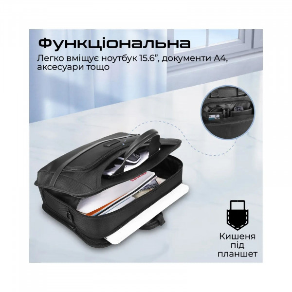 Розумно продумане внутрішнє планування дозволяє організувати усі необхідні речі: відсік для документів А4 та зовнішня кишеня-органайзер на блискавці додають зручності. Сумка оснащена знімним, регульованим ременем з м'якою накладкою, що робить її ідеальною для носіння як на плечі, так і в руці.