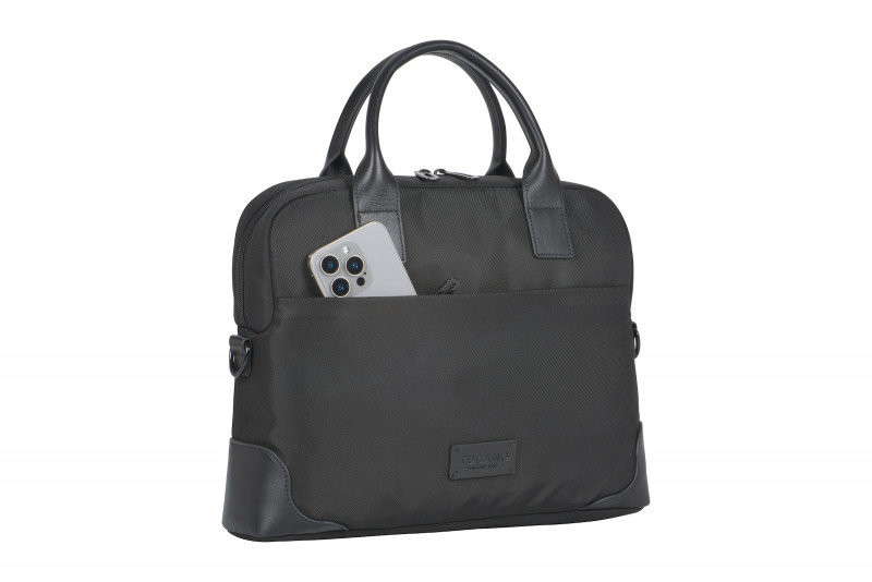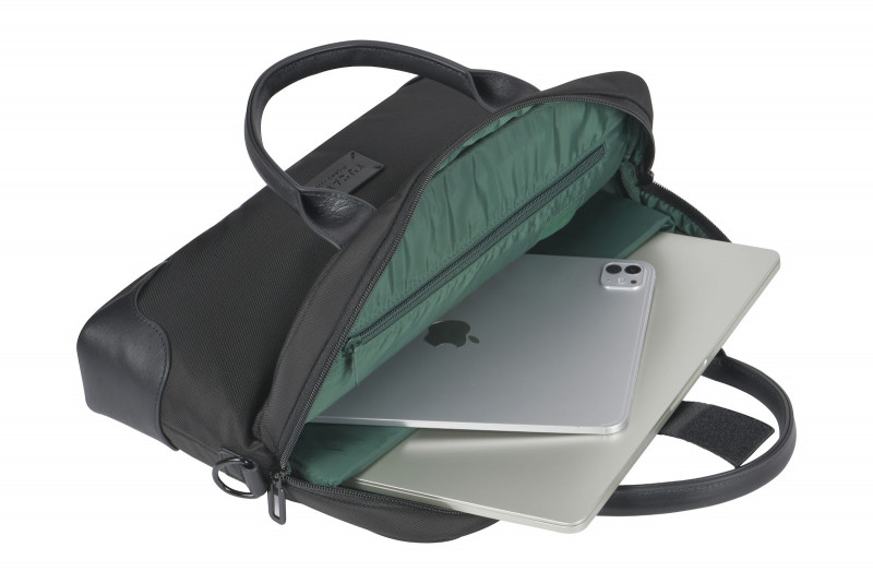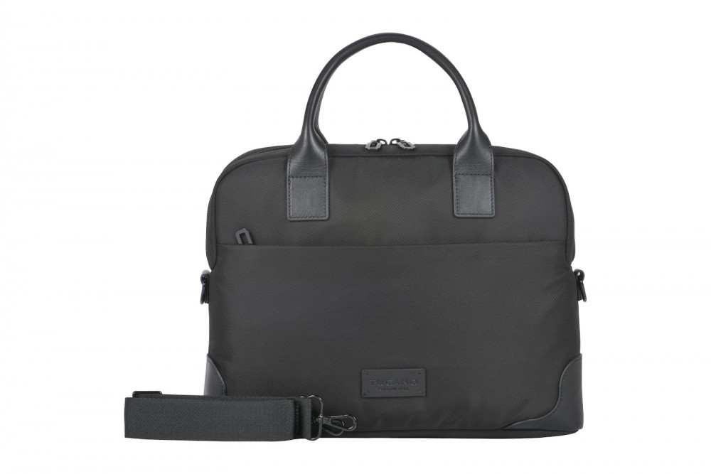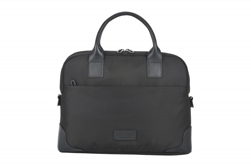 Tucano Fine 13"/14" — це ділова сумка, створена для ноутбуків до 14 дюймів і MacBook Pro 14". Вона вирізняється вишуканим дизайном і практичним внутрішнім простором. Виготовлена з нейлону та тканини, отриманої з переробленого пластику, з елегантними шкіряними елементами. Усередині розташовано два основні відділення, розділені блискавками, а також м’яка кишеня для ноутбука. Дві зовнішні кишені дозволяють швидко розмістити дрібні речі. Сумка оснащена знімним ременем із регулюванням довжини, що додає зручності у поїздках.