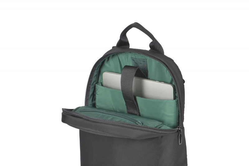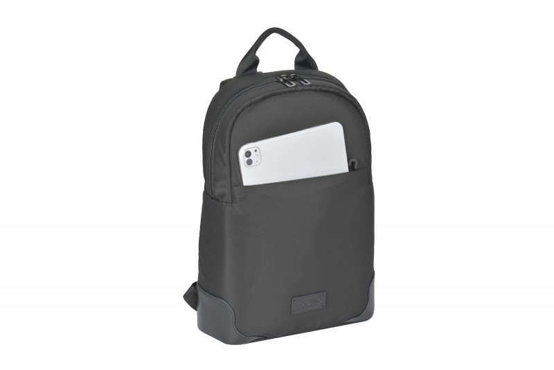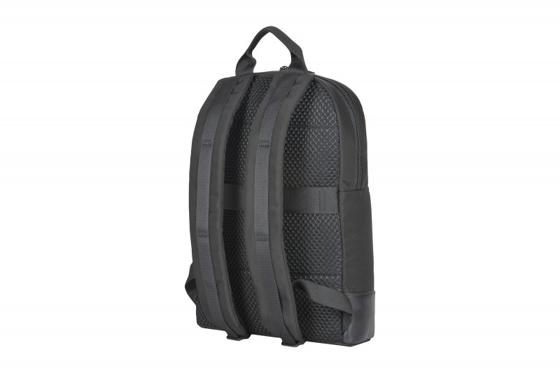 Tucano Fine 13"/14" — це рюкзак для ноутбуків 13,3–14 дюймів і MacBook Pro 14" або MacBook Air 15". Створений для тих, хто цінує стиль і функціональність. Основне відділення має м’яку кишеню для ноутбука та кілька внутрішніх секцій для аксесуарів. Зовнішня кишеня дозволяє швидко дістати потрібні речі, а задня панель оснащена прихованою кишенею для цінностей. Завдяки тканині з переробленого пластику та шкіряним елементам модель поєднує сучасний вигляд і відповідальне виробництво. Ремінець на спинці дає змогу закріпити рюкзак на валізі під час подорожей.