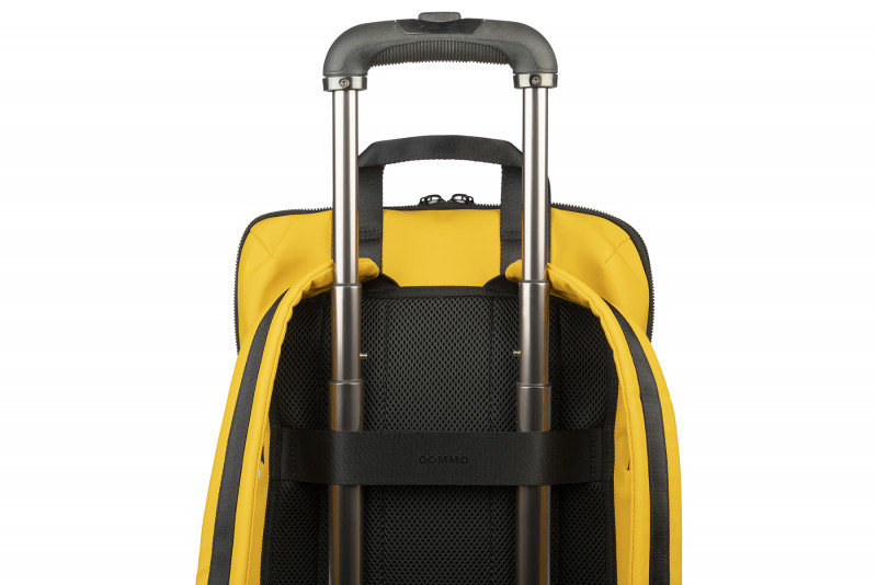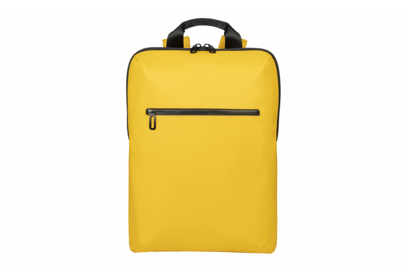 Рюкзак Tucano Gommo для ноутбуків з діагоналлю 15,6 дюймів і MacBook Pro з діагоналлю 16 дюймів. Мінімалістичний спортивний дизайн, з прогумованого матеріалу. Оснащений великим одинарним відділенням, має внутрішню кишеню для ноутбуків і зовнішню кишеню для аксесуарів. В спинку рюкзака інтегровано "дихаючу" сітчасту тканину та пасок для кріплення рюкзака на ручку валізи.