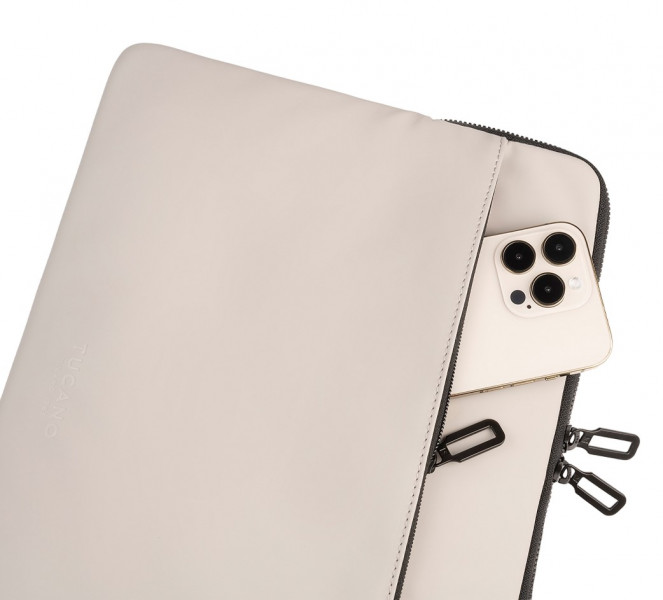 Водонепроникний чохол із прогумованого матеріалу Tucano Gommo для MacBook Pro 16" або для ноутбуків 16". Він має одне м’яке відділення з вбудованими неопреновими кутовими клапанами, які призначені для захисту кутів ноутбука, а також зручну зовнішню кишеню для аксесуарів на блискавці.
