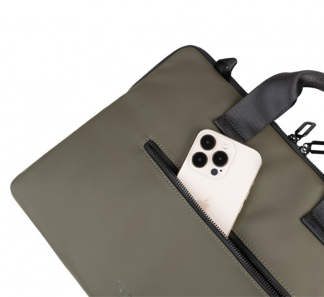 Супертонка сумка для MacBook Air 15" і ноутбука до 14". Водонепроникна з прогумованого матеріалу, призначена для 14-дюймових ноутбуків і 15-дюймових MacBook Air. Сумка Gommo має зручну зовнішню кишеню для аксесуарів з однією м'якою підкладкою з нековзними кутовими клапанами. У комплекті йде знімний плечовий ремінь.
