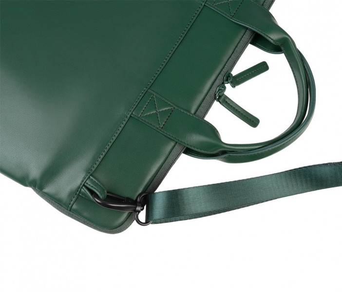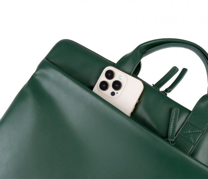 Сумка має внутрішню підкладку, що створює м’яку поверхню для техніки. Основне відділення розраховане для ноутбуків 13–14 дюймів. Зовнішня кишеня призначена для невеликих предметів. М'який поліуретан формує приємну на вигляд структуру, яка нагадує натуральну шкіру. Плечовий ремінь регулюється та може від’єднуватися. Легка конструкція робить модель зручною для щоденного темпу.