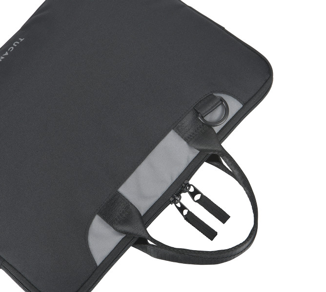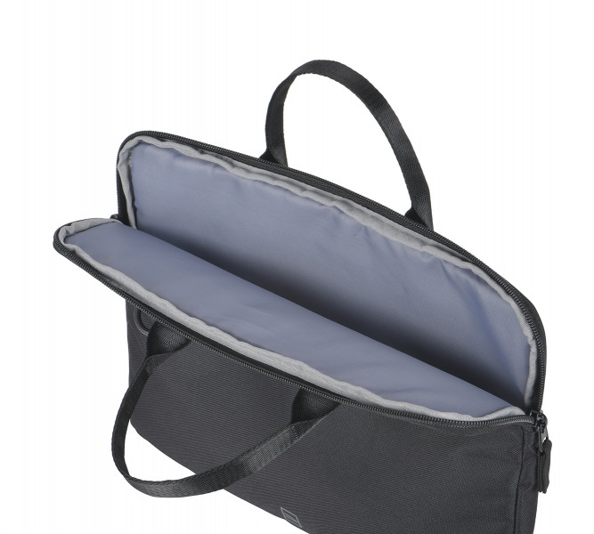 Сумка має тонкий профіль для зручного перенесення ноутбука без зайвого об’єму. Основне відділення доповнене ударостійкою внутрішньою підкладкою. Конструкція розрахована на ноутбуки з діагоналлю 13,3–14 дюймів. Матеріал виготовлений із текстильної тканини з перероблених ПЕТ-пляшок. Подвійні ручки забезпечують комфортне перенесення в руках. Знімний плечовий ремінець розширює способи носіння. Невелика вага зменшує навантаження під час щоденного використання. Лаконічне виконання відповідає діловому стилю.