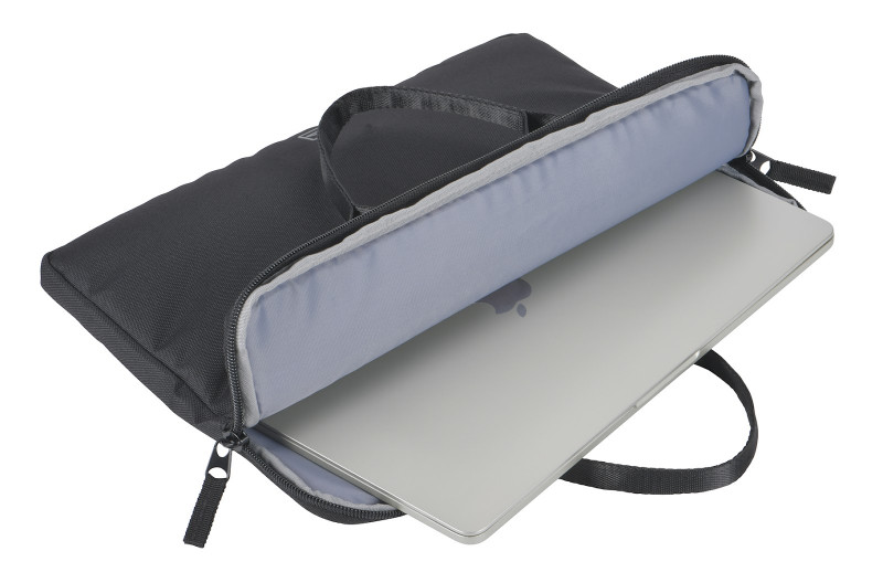 Сумка має тонкий формат для акуратного розміщення ноутбука без зайвого об’єму. Основне відділення оснащене внутрішньою ударостійкою підкладкою. Конструкція призначена для ноутбуків з діагоналлю 15,6–16 дюймів, включно з MacBook Pro 16". Матеріал виконаний із текстильної тканини з перероблених ПЕТ-пляшок. Подвійні ручки забезпечують комфортне перенесення в руках. Знімний плечовий ремінець розширює варіанти носіння. Невелика вага зменшує навантаження під час щоденного використання. Стримане оформлення відповідає діловому стилю.