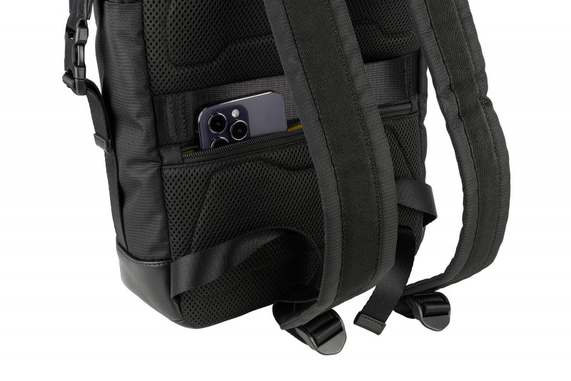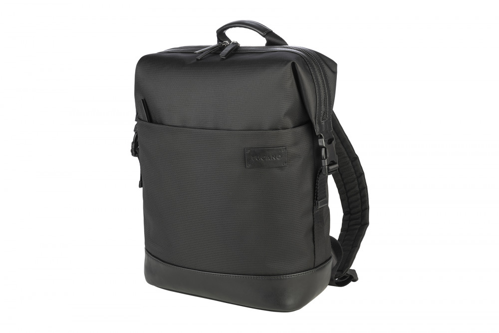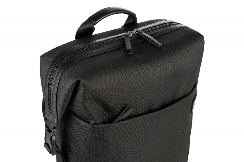 Діловий рюкзак із тканини, виготовленої з переробленого пластику, має деталі оздоблення з натуральної шкіри. Внутрішнє відділення з подвійною захисною кишенею для ноутбуків 13,3/14" або MacBook Pro 14" і планшету 11" одночасно.