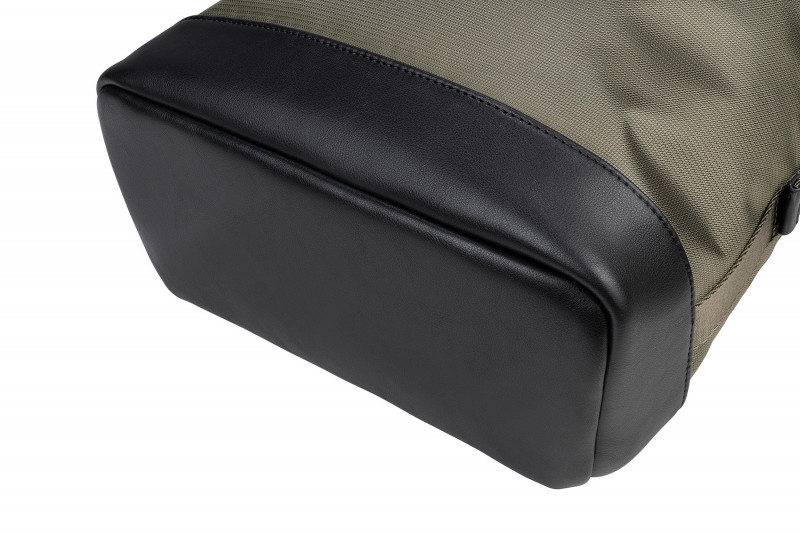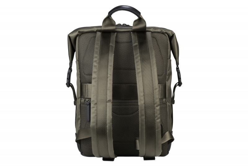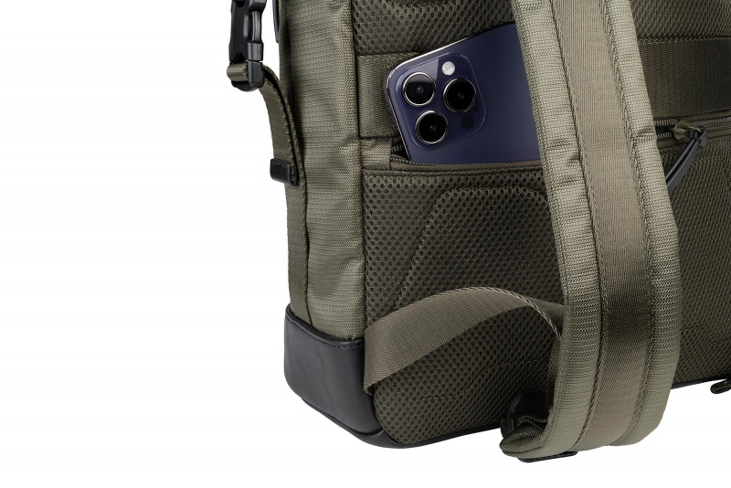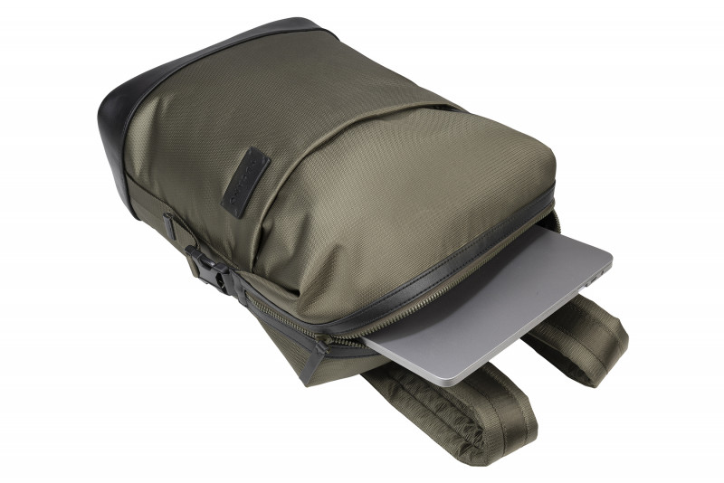 Діловий рюкзак із тканини, виготовленої з переробленого пластику, має деталі оздоблення з натуральної шкіри. Внутрішнє відділення з подвійною захисною кишенею для ноутбуків 13,3/14" або MacBook Pro 14" і планшету 11" одночасно.