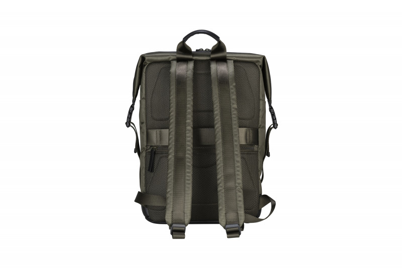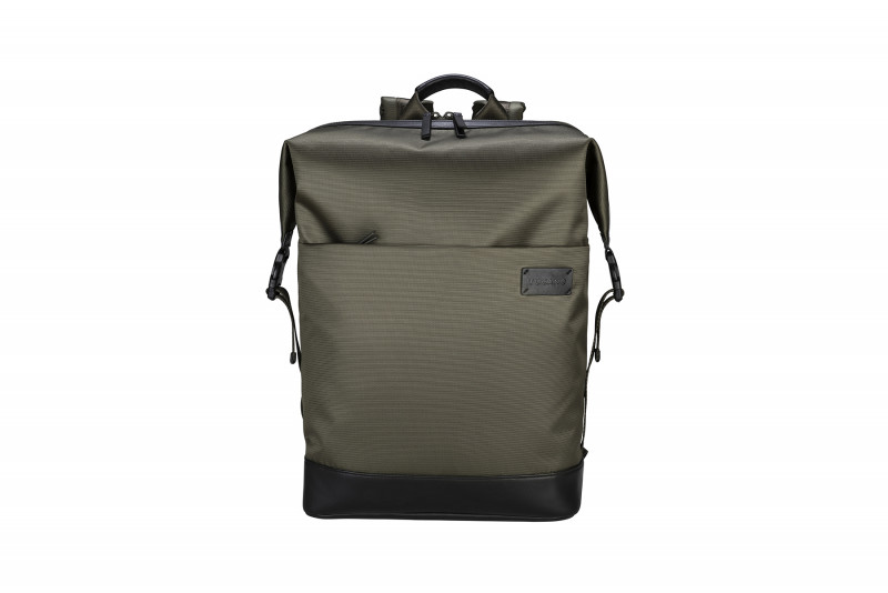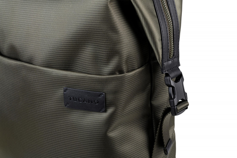Діловий рюкзак із тканини, виготовленої з переробленого пластику, має деталі оздоблення з натуральної шкіри. Внутрішнє відділення з подвійною захисною кишенею для ноутбуків 15,6/16" або MacBook Pro 16" і планшету 11" одночасно.