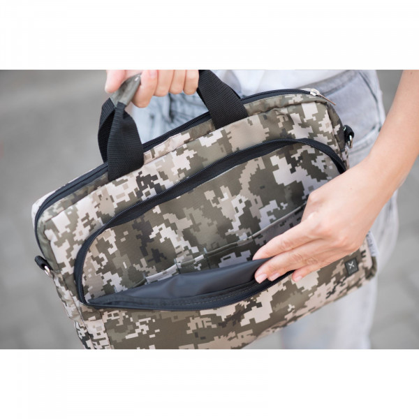 Сумка для ноутбука Vinga 14" NB1430 pixel (NB1430PX) — це зручне поєднання функціональності та стилю, що стане незамінним аксесуаром для активних людей. Виконана з високоякісного поліестеру, вона гарантує надійний захист вашого ноутбука завдяки своїм водовідштовхувальним властивостям. Універсальний дизайн цієї сумки підходить для ноутбуків розміром до 14 дюймів, з внутрішньою шириною 330 мм і висотою 230-231 мм, що робить її ідеальним вибором для більшості портативних комп'ютерів.