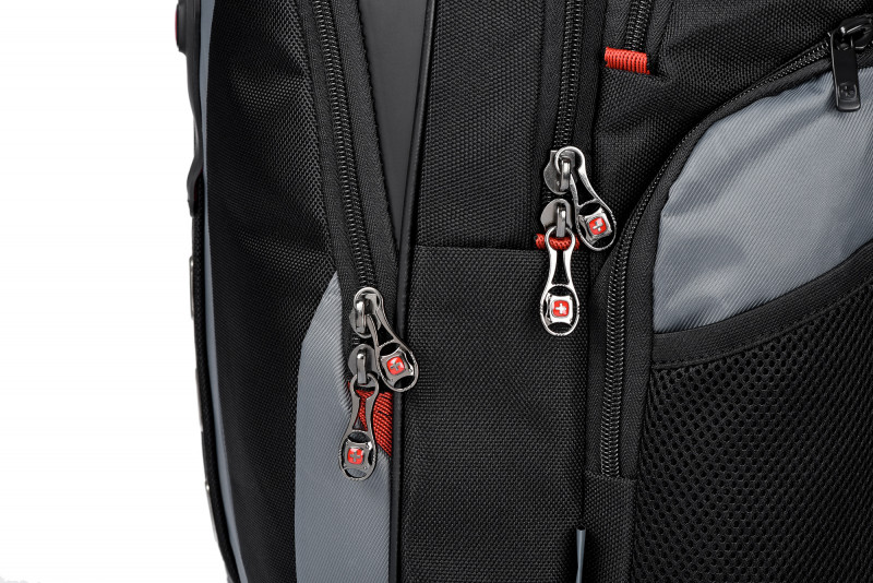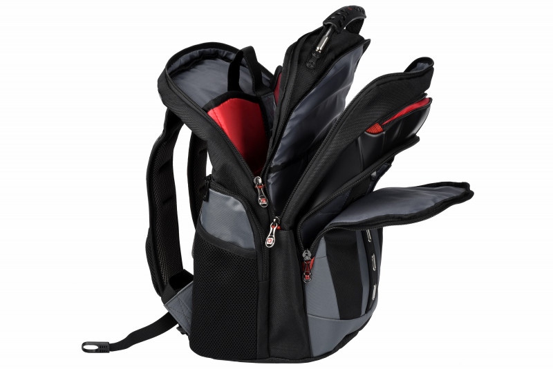 Місткий і міцний міський рюкзак Wenger Pegasus 17" з великою кількістю відсіків: З великих відсіки на блискавках, 3 кишені на блискавках, 2 сітчасті кишені.