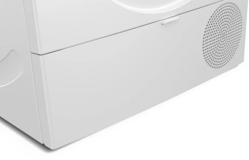 Конденсаційні сушарки не потребують підключення до води. Вам потрібно лише підключення до електромережі. Вода, що випаровувалася з висушеного одягу, збирається у спеціальному контейнері, який потрібно спорожняти після кількох циклів, про що пристрій сам повідомляє, сигналізуючи про це. Завдяки комплекту, що входить до комплекту цієї сушарки, пристрій можна підключити безпосередньо до зливу. Це рішення дозволяє зливати воду безпосередньо в каналізацію, що усуває необхідність спорожняти контейнер для конденсату.