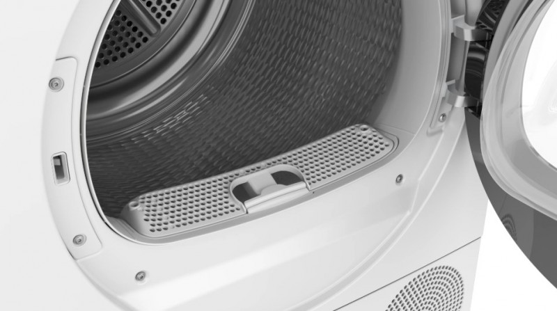 Конденсаційні сушарки не потребують підключення до води. Вам потрібно лише підключення до електромережі. Вода, що випаровувалася з висушеного одягу, збирається у спеціальному контейнері, який потрібно спорожняти після кількох циклів прання, про що пристрій сам повідомляє, сигналізуючи про це. Завдяки комплекту, що входить до комплекту цієї сушарки, пристрій можна підключити безпосередньо до зливу. Це рішення дозволяє зливати воду безпосередньо в каналізацію, що усуває необхідність спорожняти контейнер для конденсату.