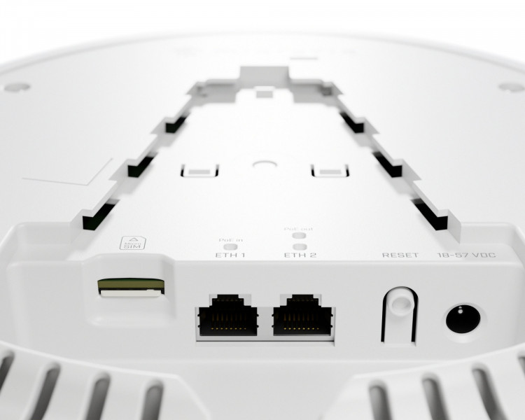 cAP LTE12 ax має два порти Gigabit Ethernet із підтримкою PoE-входу (Power over Ethernet) та PoE-виходу, що дозволяє живити інші пристрої, наприклад, камери відеоспостереження чи додаткові точки доступу, спрощуючи розгортання мережі. Компактний дизайн для монтажу на стелю не лише забезпечує оптимальне поширення сигналу, а й робить пристрій непомітним, зменшуючи ризик крадіжки чи пошкодження.