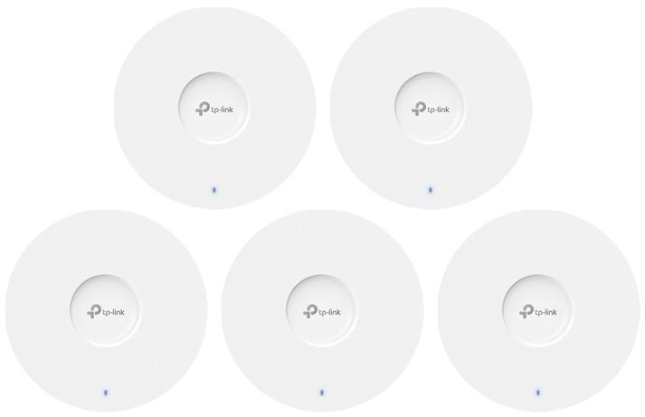 EAP613 — точка доступу Wi-Fi 6 для кріплення на стелі, у комплекті передбачено 5 штук.. Працює в діапазонах 2,4 ГГц зі швидкістю до 574 Мбіт/с та 5 ГГц до 1201 Мбіт/с, що забезпечують загальну швидкість Wi-Fi 1775 Мбіт/с.