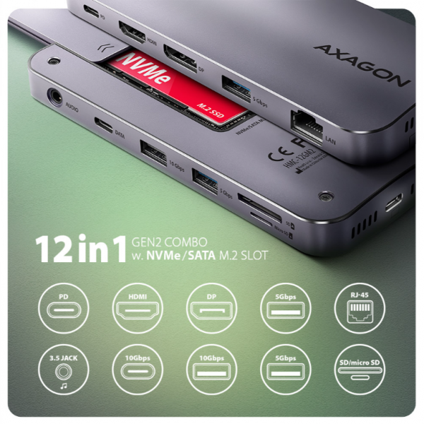 Отзывы о AXAGON HMC-12GM2 USB-C 10Gbps GEN2COMBO 12in1 hub