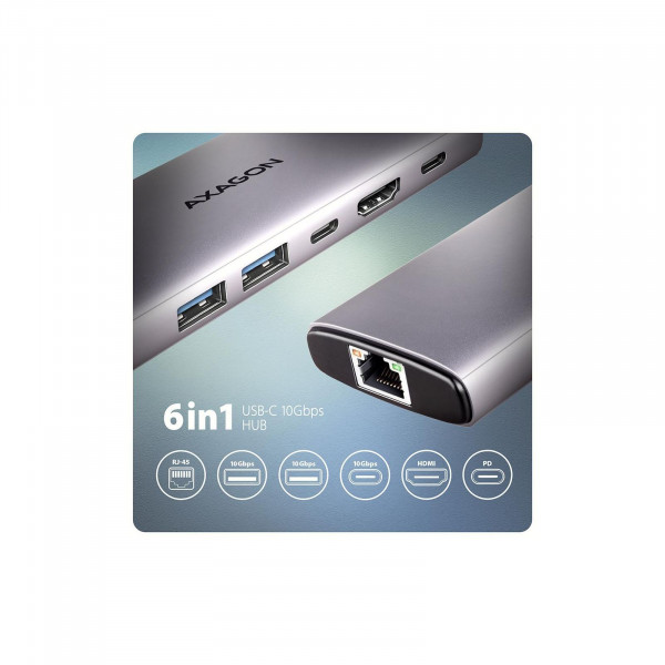 AXAGON HMC-6G2L — це універсальний концентратор USB-C 3.2 Gen 2 (10 Гбіт/с), який поєднує шість інтерфейсів у компактному корпусі. Пристрій розширює можливості ноутбуків, ПК та мобільних пристроїв, забезпечуючи одночасне підключення монітора, трьох USB-пристроїв, Gigabit Ethernet-мережі та заряджання через Power Delivery. Це ідеальне рішення для користувачів, які шукають продуктивну й стабільну док-станцію для роботи або мультимедійних задач.