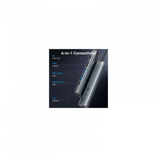 Отзывы о Vention USB-C 6-in-1 HDMI + 2xUSB 3.0 + RJ45 + PD 100W (TGNHB)