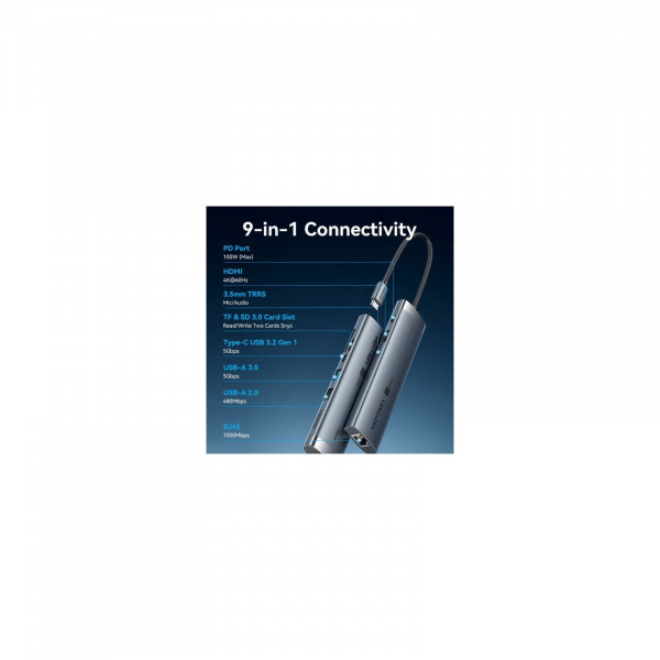 Отзывы о Vention USB-C 9-in-1 HDMI 60Hz + 2xUSB 3.0 + RJ45 + SD/TF + 3.5mm + PD 100W (TGVHB)