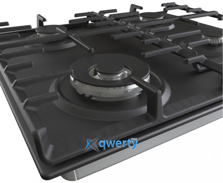 Варочная поверхность газовая; материал: эмаль; Кол-во газовых конфорок: 4; размеры (ШхГ): 60x52 см; газ-контроль: есть; Решетки конфорок: чугунные; Управление: механическое; цвет: чёрный