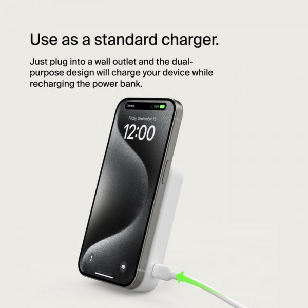 Потужність заряджання до 15 Вт дозволяє швидко відновлювати заряд батареї ваших пристроїв. Акумулятор особливо корисний для власників iPhone, які можуть користуватися функцією MagSafe для надійної фіксації й оптимального заряджання. Крім того, він сумісний із широким спектром пристроїв, що підтримують Qi.