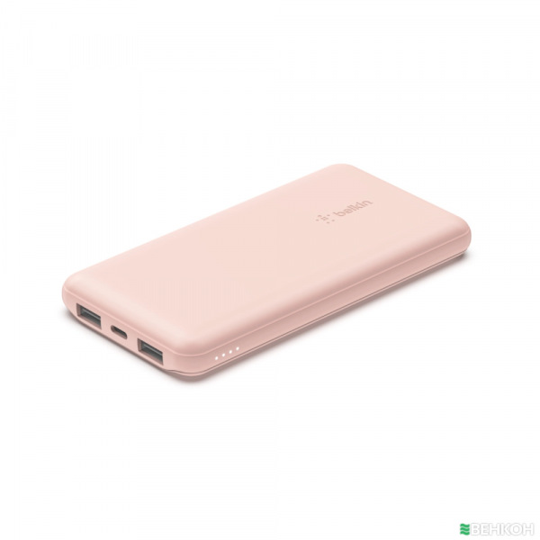 Belkin BOOST↑CHARGE™ Power Bank BPB011BTRG — це універсальний портативний акумулятор з ємністю 10,000 мАг, що дозволяє заряджати до трьох пристроїв одночасно. Він оснащений двома USB-A портами та одним USB-C, який працює як на вхід, так і на вихід. Загальна потужність досягає 15 Вт, розподіляючись між усіма підключеними пристроями. Павербанк забезпечує додаткові 40 годин роботи смартфона, що робить його ідеальним для тривалих поїздок та подорожей.