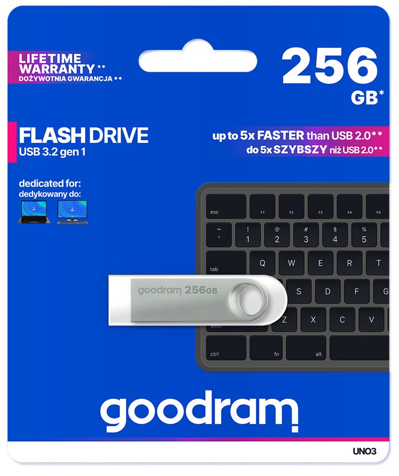 Флеш-накопичувач UNO3 доступний у п’яти різних варіантах ємності – від 16 до 256 ГБ. Завдяки використанню високоякісних компонентів він досягає швидкості читання 60 МБ/с і швидкості запису до 20 МБ/с. Це означає не лише швидку передачу даних, але й високу продуктивність, що, у свою чергу, означає комфортне та ефективне використання.