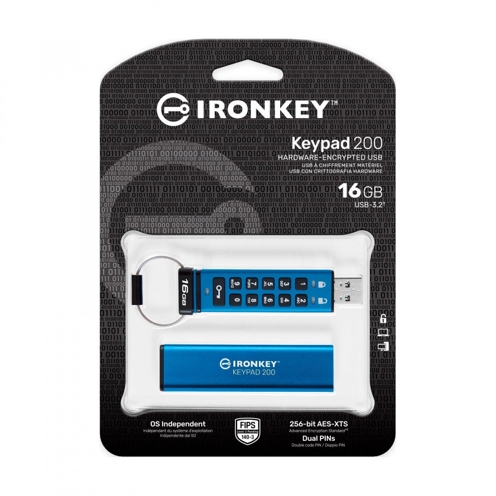 Kingston IronKey Keypad 200 - це USB-накопичувачі Type-A і Type-C з апаратним шифруванням, оснащені буквено-цифровою клавіатурою для зручного доступу за допомогою PIN-коду, які не залежать від ОС.