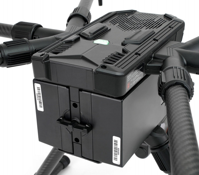 | Літальний аппарат | Матеріал корпусу Пластик /(Побудований на новій карбоновій рамі зі складеними променями); Тип двигуна Безколекторний /6 шт; Антени 2 RTK; Ступінь захисту IPx4 - IPx5; Живлення моделі акумулятор /Li-Ion HV, 6S; Ємність батареї квадрокоптера 12800 мАгод; Час однієї зарядки акумулятора 90 хв; Вага акумулятора 1390 г; Система уникнення перешкод; Датчик Радар міліметрового діапазону /(опціонально) |