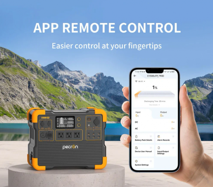 Модель Pecron E1500LFP оснащена функцией APP Control, позволяющей контролировать ключевые параметры станции через мобильное приложение. Это дает пользователю доступ к информации о текущем уровне заряда, входной и выходной мощности, активных портах и режимах работы. Такая возможность удобна при размещении станции в труднодоступном месте, а также для пользователей, которые предпочитают отслеживать энергопотребление и оптимизировать нагрузку.