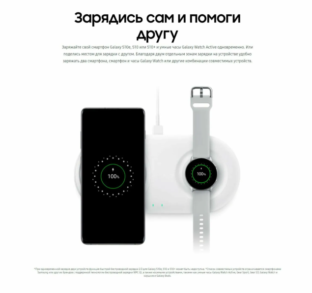 У разі одночасного заряджання двох пристроїв функція швидкого бездротового заряджання Fast Wireless Charging 2.0 для Galaxy S10e, S10, S10 +, Note10, Note10 + може бути недоступна.